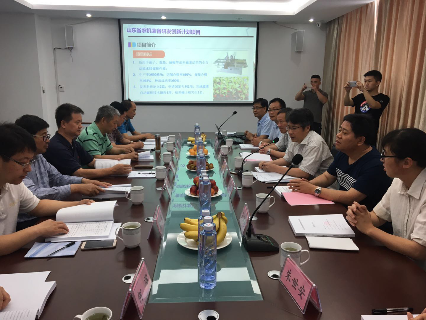 6月10日,山东省农业机械管理局组织中国农业大学、农业部南京农业机械化研究所、北京航空航天大学等国内有关专家组成专家组,在日照对英国365官方网站与山东中天盛科自动化设备有限公司联合承担的山东省农机装备研发创新计划项目“一组六株同步蔬菜自动嫁接装备创新研发”进行了鉴定验收。