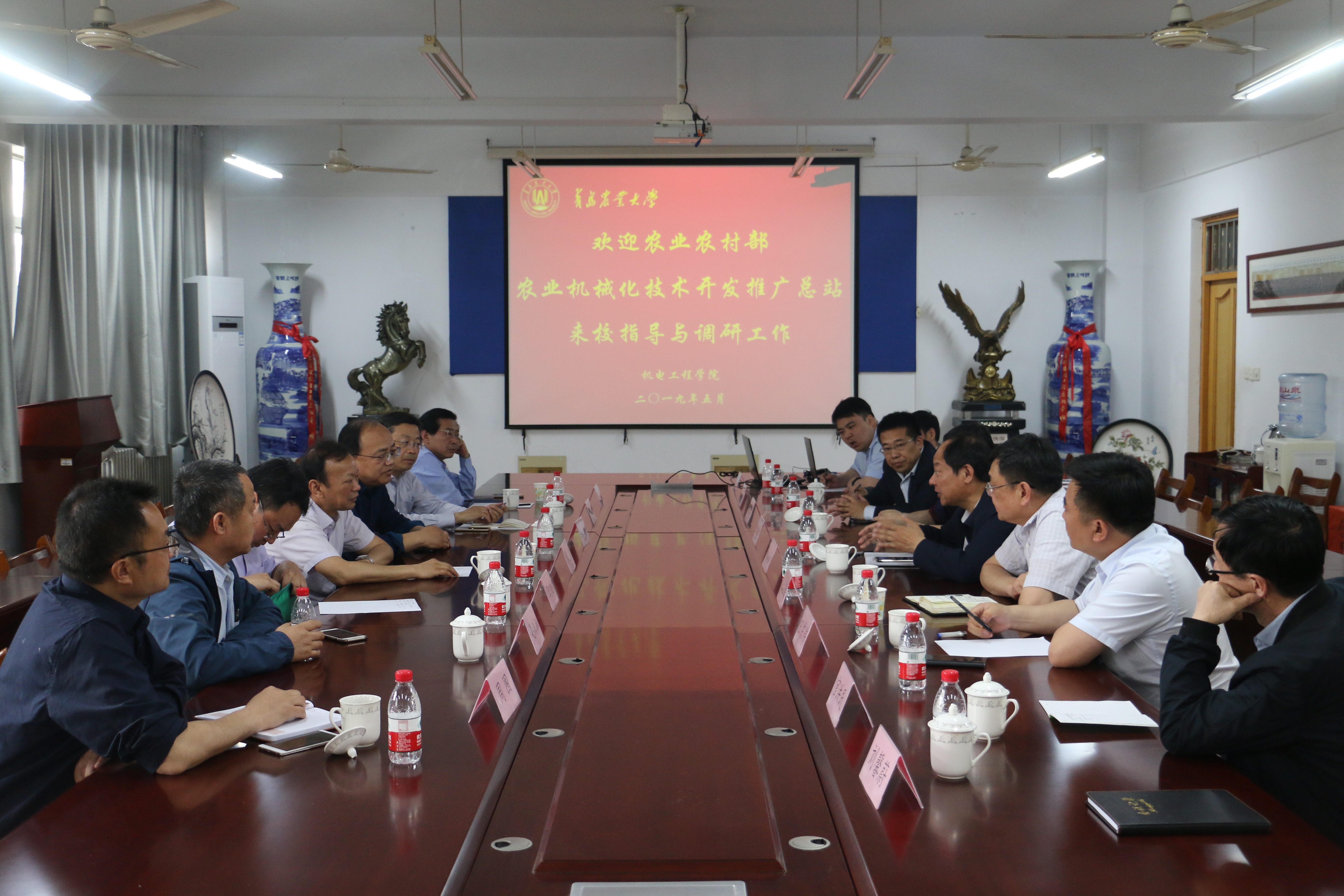 5月11日,农业农村部农机推广总站副站长涂志强、农机推广一处处长姚海、副处长王超、青岛市农业农村局副局级干部程兴谟、青岛市农机推广站站长周围、胶州市农机局局长阎凤强、青岛洪珠农业机械有限公司总经理吴洪珠来访英国365官方网站英国上市公司365,院长尚书旗、党委书记李在洪、部分教师代表参加了座谈交流。
