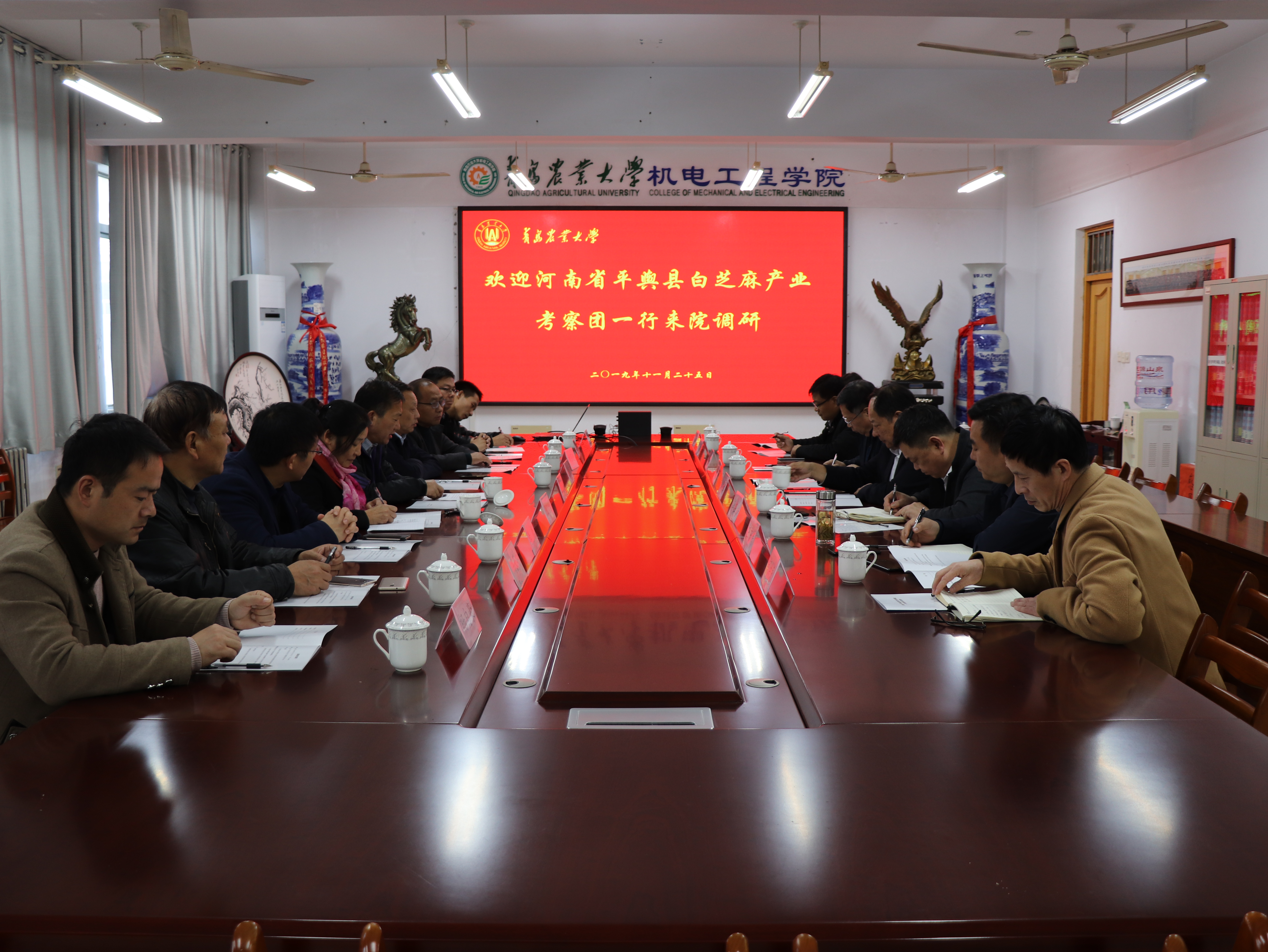 11月25日下午河南省平舆县白芝麻产业考察团一行来我院调研工作,河南省平舆县芝麻产业办主任陈拥华、河南省农业科学院芝麻研究中心主任卫双玲河南省平舆县农业机械管理局局长余中原、河南省平舆县农科站站长李锋、河南省平舆县芝麻产业办副主任杨永超、大阳通用机械有限公司总经理刘圣迎等来院调研,英国365官方网站英国上市公司365院长尚书旗、党委书记李在洪出席调研会。会议由尚书旗主持。