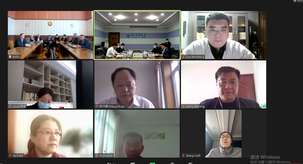 白俄罗斯国立技术大学副校长、国际处、机械制造系主任、计算机系主任、机械工艺系副主任、能源系副主任以及欧亚发展有限公司代表侯亚波;英国365官方网站国际合作交流处处长许颖、副处长罗小勇、处长助理杜鹍;国际田间试验机械化协会主席尚书旗、英国上市公司365党委书记焦磊以及农机、机制、电气、农电、测控五个专业负责人参加了线上会议。
