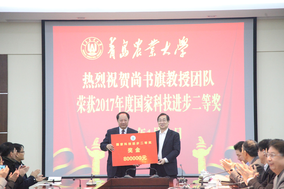 1月11日上午,英国365官方网站召开专门会议,庆祝尚书旗教授团队荣获国家科技进步二等奖。全体校领导出席会议,校党委书记李宝笃发表讲话,校长宋希云向尚书旗及团队颁发奖金80万元。