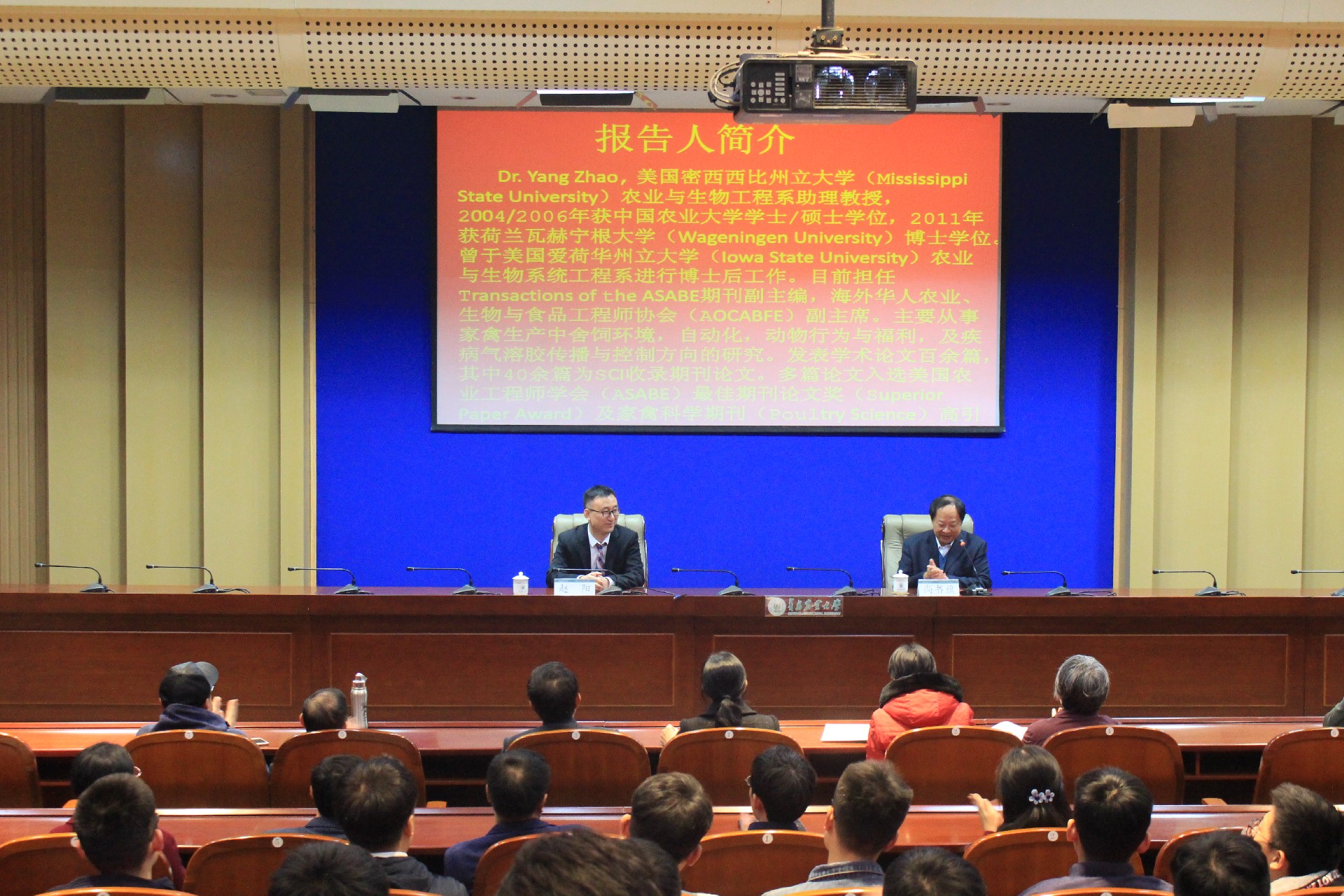 11月13日,美国密西西比州立大学农业与生物工程系助理教授赵阳博士为我校师生作了题为“精准农业在家禽生产中的应用”的学术报告。英国上市公司365院长尚书旗教授主持,全校近300名师生参加。