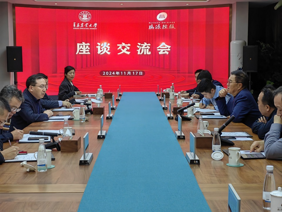 座谈会上,赵金山对瑞源控股集团长期以来对学校发展所给予的大力支持表示感谢,并介绍了学校在学科建设、人才培养、科技创新和平台建设等方面的发展情况。赵金山指出,瑞源控股作为山东省著名民营企业,近年来聚焦“科技+人才”双引擎发展,在高端智能制造、生态农业建设、智慧健康医养等方面科研成果突出,社会成效显著。希望双方以本次调研交流为契机,找准校企合作的切入点,在智能农机装备研发、农产品精深加工、农业种植示范基地建设等方面建立长效合作机制,共同为乡村振兴战略和科技兴青行动战略贡献力量。