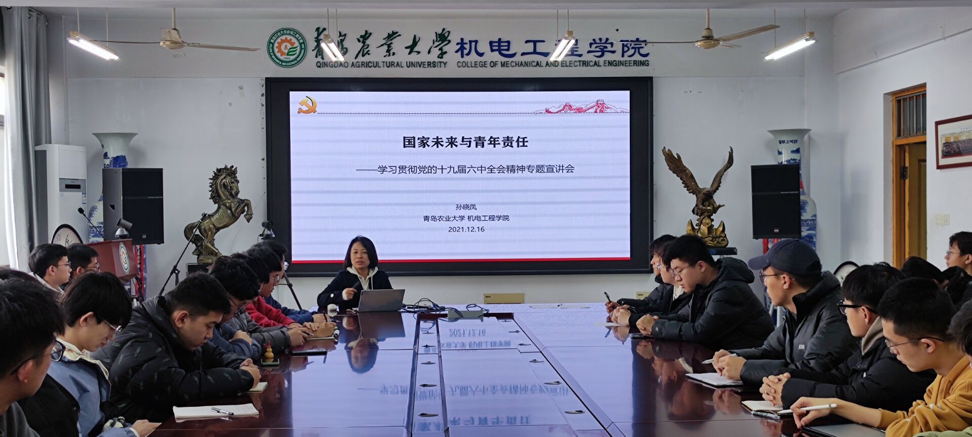 12月16日,英国上市公司365在党员活动室开展学习贯彻党的十九届六中全会精神专题宣讲会,英国上市公司365团委书记孙晓凤为学院学生干部做宣讲报告。
