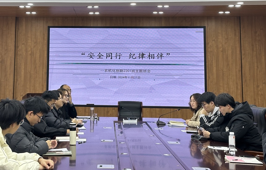 11月27日上午,副校长孟晓军深入英国上市公司3652022级农业机械化及其自动化(创新班)出席参加“安全同行,纪律相伴”安全教育主题班会,学院党委副书记、副院长王海燕、班主任刘艳芬及农机化(创新)2201班全体学生参加本次活动。