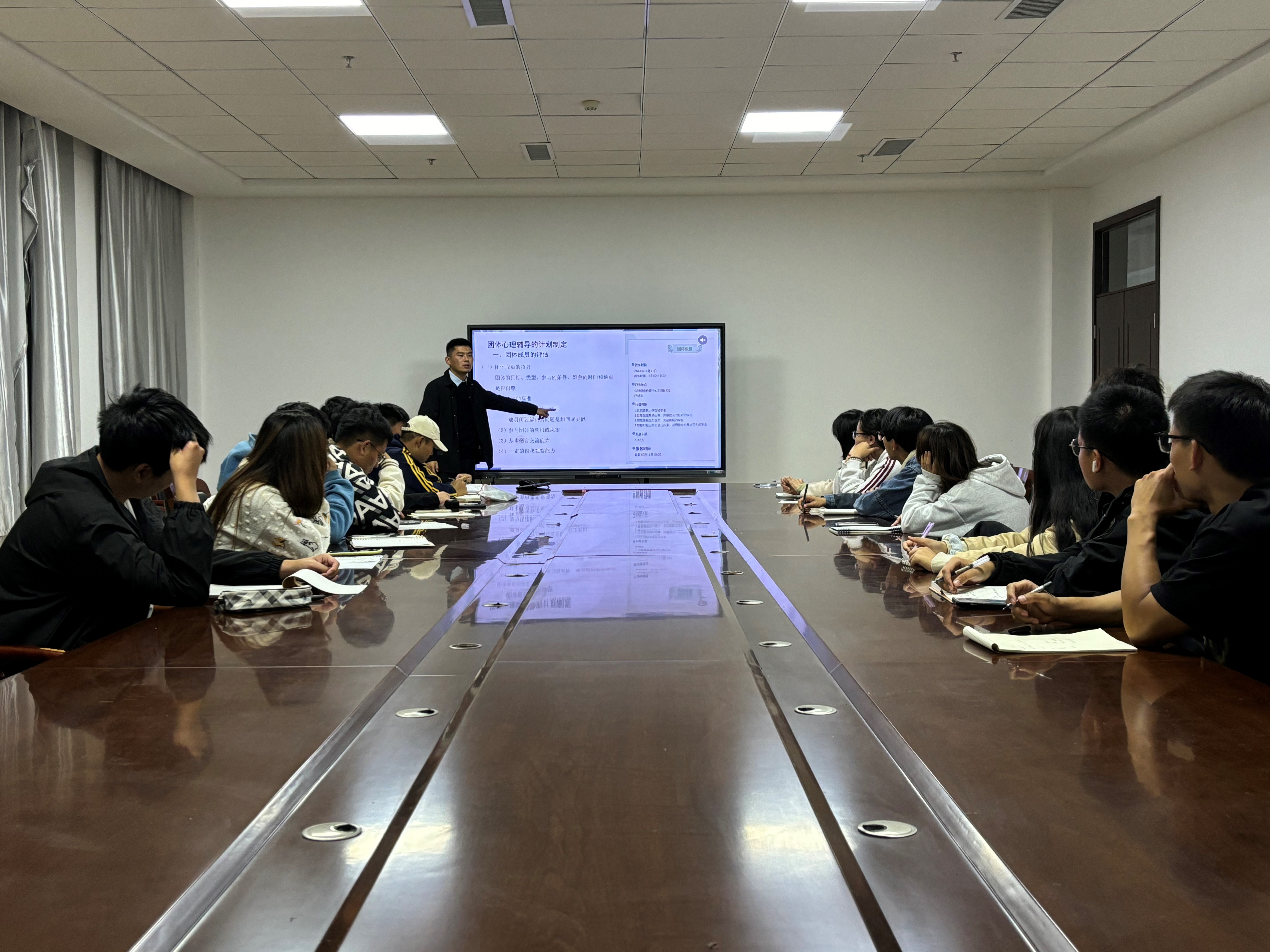 培训中,迟名龙从团体心理辅导的定义、理论基础、促成因素、制定计划、注意事项等方面,详细介绍了如何开展班级团体心理辅导,并强调心理委员采用朋辈心理辅导的方式,运用一定的专业知识和生活经验进行同龄人之间的心理互助和激励,是很重要且容易被同学们接受的心理辅助方式。最后,辅导员唐靓表示,心理委员要学以致用,利用掌握的专业技能,在开展团体辅导活动时及时发现情绪等异常学生,协助学院更好地帮助心理危机学生。