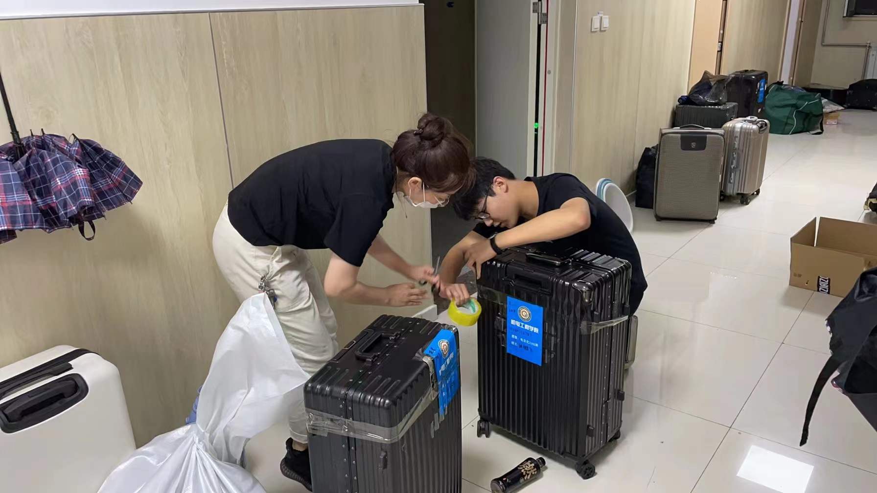 学院志愿者忙碌在搬迁现场。为保证搬迁工作顺利开展,学院组建了一支由学生党员、积极分子、学生骨干构成的志愿服务队伍,从前期策划准备到具体搬迁实施,学院志愿者全程参与。志愿者对2021级宿舍进行了全面清扫,宿舍内外焕然一新。搬迁现场,志愿者分组协作,与2021级同学一起迅速高效地完成了行李搬运等工作。