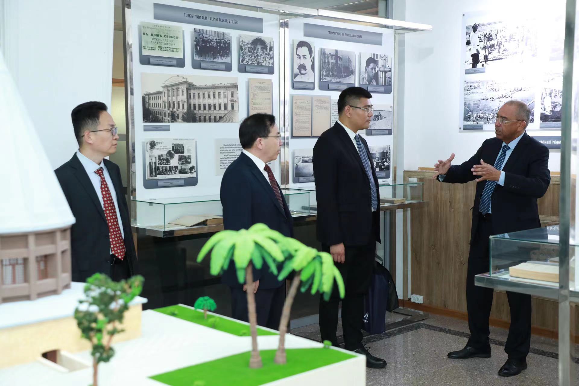 赵金山对巴霍迪尔·米尔扎耶夫的欢迎表示感谢,从学校办学历史、学科设置、科研优势以及国际合作等方面介绍了英国365官方网站的基本情况,表示英国365官方网站将积极响应“一带一路”倡议,以中心的建立为契机,不断创新国际合作模式,在智能农机、新能源、智慧农业等领域开展务实合作。赵金山强调,两校学科优势相近,未来可以在共建双碳研究院、食品产业园等领域不断深化产学研用全链条务实合作,为构建中乌命运共同体贡献力量。