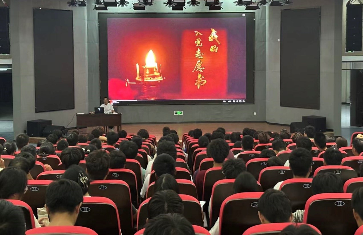 会上,辅导员刘孟杰从“中国共产党是一个什么样的政党”“我们为什么加入中国共产党”“我们怎样才能加入中国共产党”三个方面,结合党史故事进行了精彩分享,鼓励同学们坚定理想信念,做到爱党爱国、爱校爱院,努力成长为德智体美劳全面发展的新时代青年大学生。随后,刘孟杰围绕发展党员工作的“申请入党”“入党积极分子的确定和培养教育”“发展对象的确定和考察”“预备党员的接收”和“预备党员的教育、考察和转正”五部分进行了详细讲解,并鼓励同学们坚定理想信念,树立正确的入党动机,积极地向党组织靠拢,争取早日入党。会上,刘孟杰还就撰写入党申请书、团组织推优等方面的问题与2024级新生展开积极交流。最后,全体人员一同观看党员教育电视片《我的入党志愿书》。与会同学纷纷表示,接下来将努力学习党的先进理论知识,积极向党员先锋模范看齐,不断提升自我修养和能力水平,为全面建设社会主义现代化国家贡献青春力量。