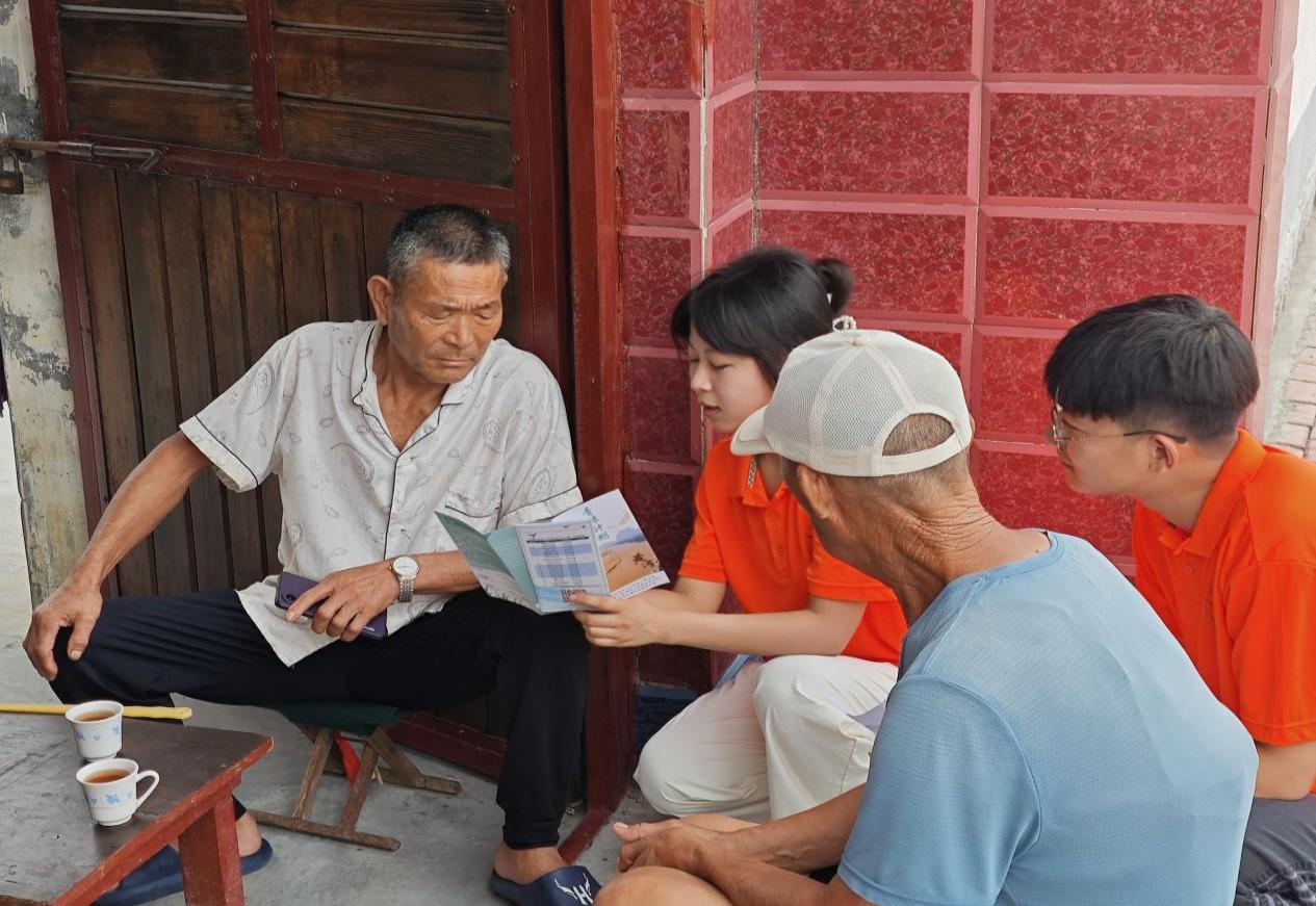 实践服务团前往马屋村和李屋村,举办了科普讲堂活动,宣讲员以通俗易懂的讲解方式,科普宣讲了有关黄河保护、生态文明建设、盐碱地农业发展等内容。在实践服务团宣讲员的讲解下,爱河护河讲文明、黄河保护治理、盐碱地农业生态高效等词组,在村民心中留下了深刻的印象。实践服务团还积极与村干部进行深入交流。李屋村支部书记李兴表示要始终秉持生态优先、绿色发展的原则,同时重视黄河流域传统工艺的文化传承。应李兴的邀请,实践服务团前往“汇绢纺”,深度体验黄河流域传统纺织布技艺,感受非遗文化之美,进一步加深了对木制纺织布器具的认识,并结合自身学科专业,提出了通过改良木质机械传动装置,使纺布生产效率得到提升的建设方案。