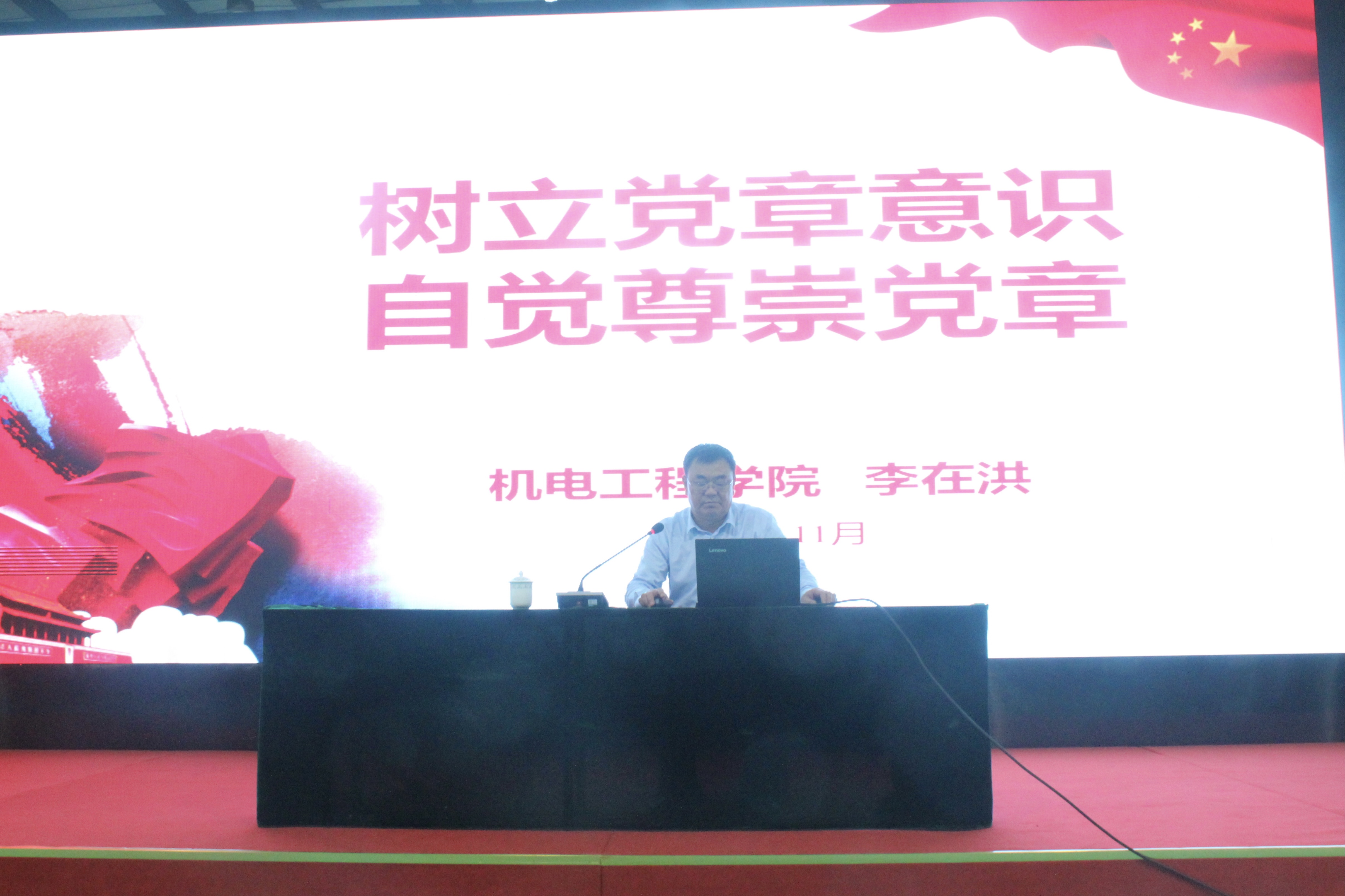 李在洪以“树立党章意识,自觉尊崇党章”为主题,从《党章》的内容、党面临的巨大挑战、党章意识来源、如何树立党章意识和如何进行党章学习五个方面,为全体学员上了一节内容丰富的专题党课。他指出党章意识不强、党的观念淡薄,是当前我们党面临的巨大挑战,需要党员同志通过日常学习、参加培训等形式全面掌握党章的基本内容,深刻把握党章的精髓要义。最后李在洪向全体学员提出以下要求:一是要认真学习党章、严格遵守党章,把党章各项规定落实到行动上,切实做到入脑入心,内化于心、外化于行;二是要自觉用党章规范自己的一言一行,在任何情况下都要做到政治信仰不变、政治立场不移、政治方向不偏,在生活和学习中,处处发挥先锋模范作用;三是打牢学习党章这个基本功,要经常学,带着问题学,深入思考。